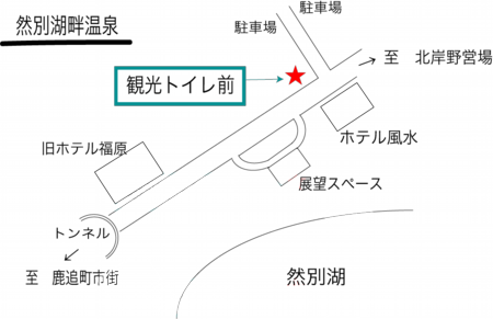 「観光トイレ」前、または「ホテル風水」玄関前、になります。