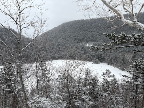 うっすら雪化粧した森がきれいでした。駒止湖は真冬に近い景色。然別湖はまだ凍っていませんが、湖面は風も弱く穏やかで、岸辺では、小さなつららや、岩を覆う氷のコーティングが見られました。