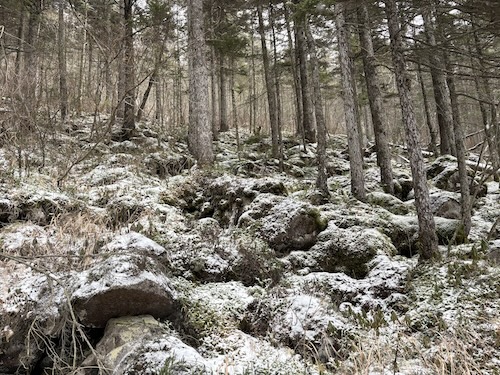 ひらひらと雪が舞っていた今日の然別湖の森。雪を乗せた小さな苔が可愛くて癒されました。