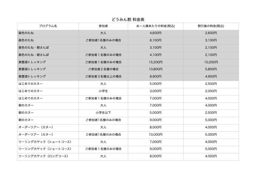 割引価格でボレアルのフォレストの対象プログラムにご参加いただけます。